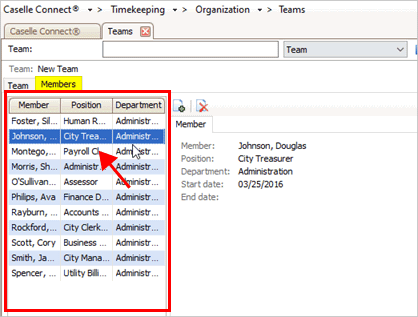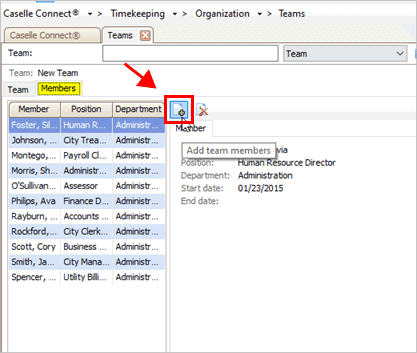Add employees to a team. The employees must be set up in the Employees table in Connect Payroll or Connect Timekeeping. The changes that you make to the team in Connect Timekeeping will also be available in Connect Payroll.