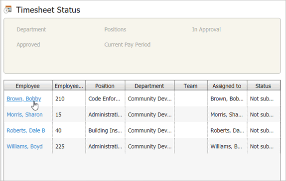 Timesheet Status page
