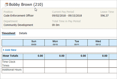 4. Review the employee timesheet, hours, and detail.