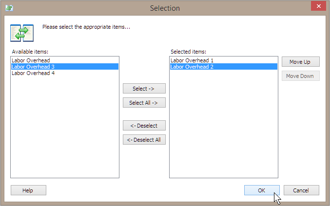 Move the overheads that you want to use to calculate the new overhead to the Selected Items list.