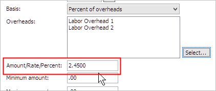 5. Use the Amount/Rate/Percent field to enter the percentage to calculate on each overhead.