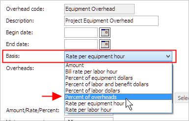 3. Use the Basis menu to select Percent of Overheads.