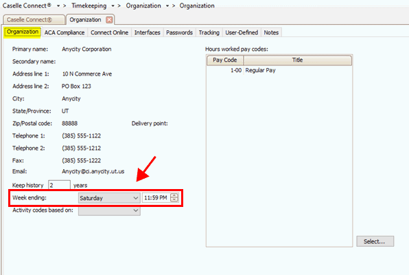 Week Ending box on the Organization tab