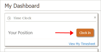Use the Time Clock widget in Connect Online to update your timesheet. Use it to clock in at the start of a work day and clock out when you're finished.