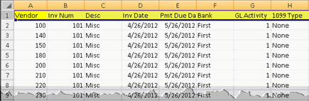 A column heading that describes the data in a column but is not necessarily data that you want to use to create an invoice record is a line to skip. In this example, the yellow line is the column heading row.