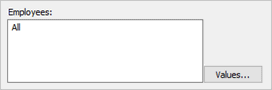 Filter the employees with hours that you want to include. Use All to include hours for all employees. To import hours for a specific employee or employees, click the Values button.