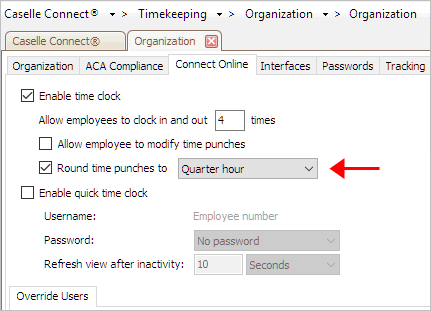 When you select this option, Connect will change the department timesheet default setting to round time punches.