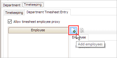 The employee is set up as proxy for the department. As proxy, the employee can fill in timesheets for employees in the department. Next, update the employee record to allow the employee to serve as proxy for the department. See the help topic titled