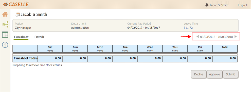 When a manager is not available to approve their employee timesheets, you can approve the employee timesheets for the absent manager. As the application administrator, you can: Modify employee timesheets for employees Submit employee timesheets for ...