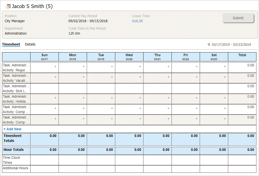 Usually, submitting your timesheet is the last task you'll perform each pay period. Your organization may require you to balance the Timesheet Totals with the Hours Total so the same number appears as the Timesheet Total and Hours Total for each day ...