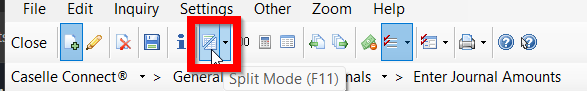 Journal Amounts, click the Split Mode Icon on the top task bar (see below).
