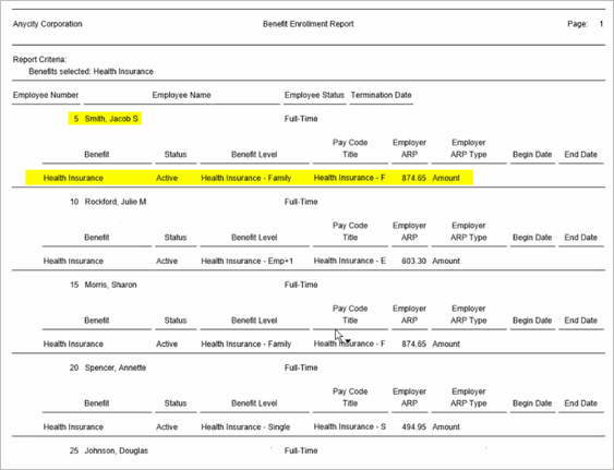 Use the Benefit Enrollment Report for active employees to verify that each employee has health insurance. Do not worry about the benefit amount. Each employee that is listed on the report should also have a health insurance benefit.