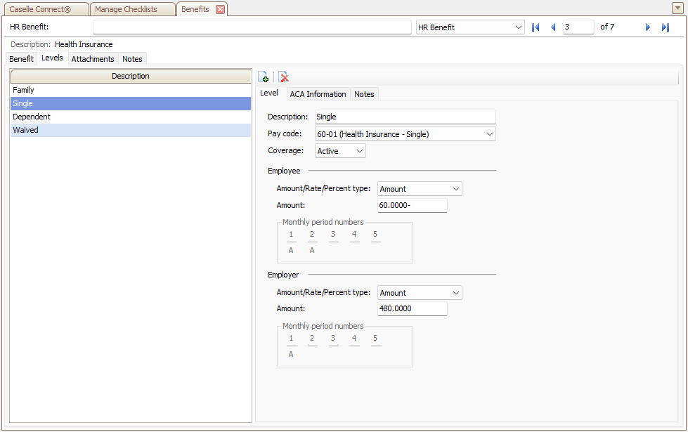 - Yes, but Caselle Human Resources is not set up for ACA Reporting. You’ll need to complete this section to set up a benefit record for each health insurance provider and add the benefit record for health insurance to employees with health insurance. See the section titled How do I add a benefit record for health insurance?